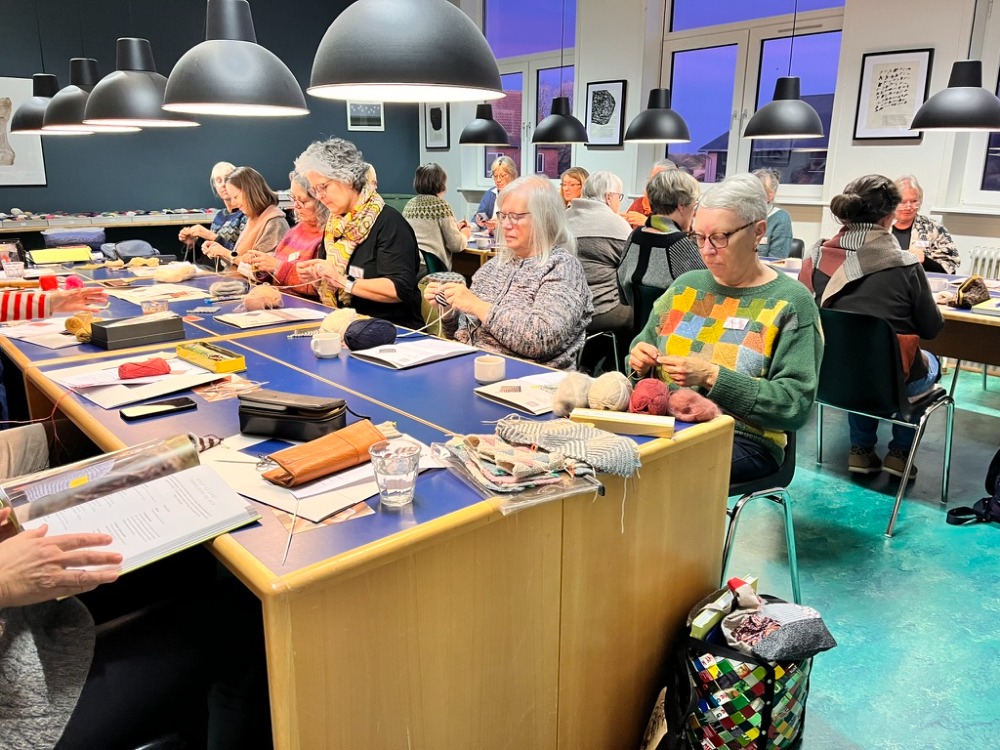 Jeg fortæller om bogens tilblivelse og meget mere. Desuden strikker vi en firkant hver - der er 25 forskellige.